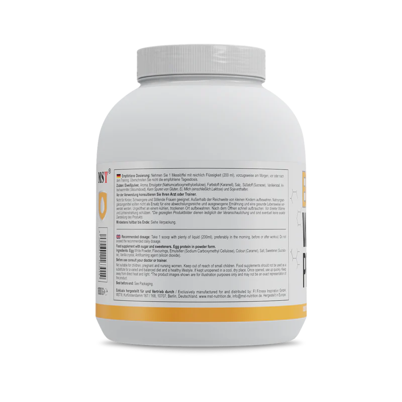 MST® Nutrition Egg White Protein ir augstas kvalitātes proteīna pulveris, kas iegūts no olu baltumiem. Tas ir ideāli piemērots sportistiem un aktīva dzīvesveida piekritējiem, kuri vēlas palielināt olbaltumvielu uzņemšanu un veicināt muskuļu masas uzturēšanu. Šis produkts ir lieliska alternatīva piena proteīniem, jo nesatur laktozi un ir viegli sagremojams.